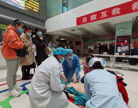 现场通过急救演示规范操作、发放宣传资料、义诊咨询等形式,帮助广大市民了解学习急救意识,掌握急救技能。
