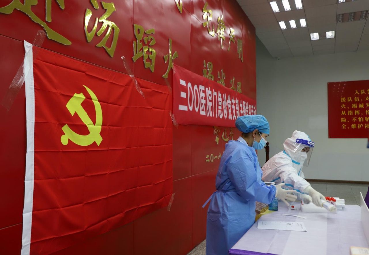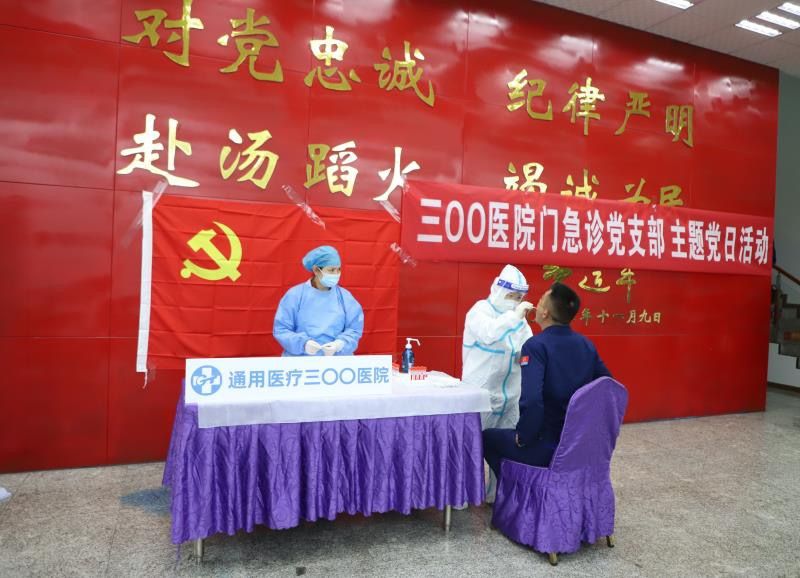 10月28日上午八点,三〇〇医院门急诊党支部志愿者服务队来到贵阳经开区消防救援大队,为消防员们提供上门核酸采集服务。