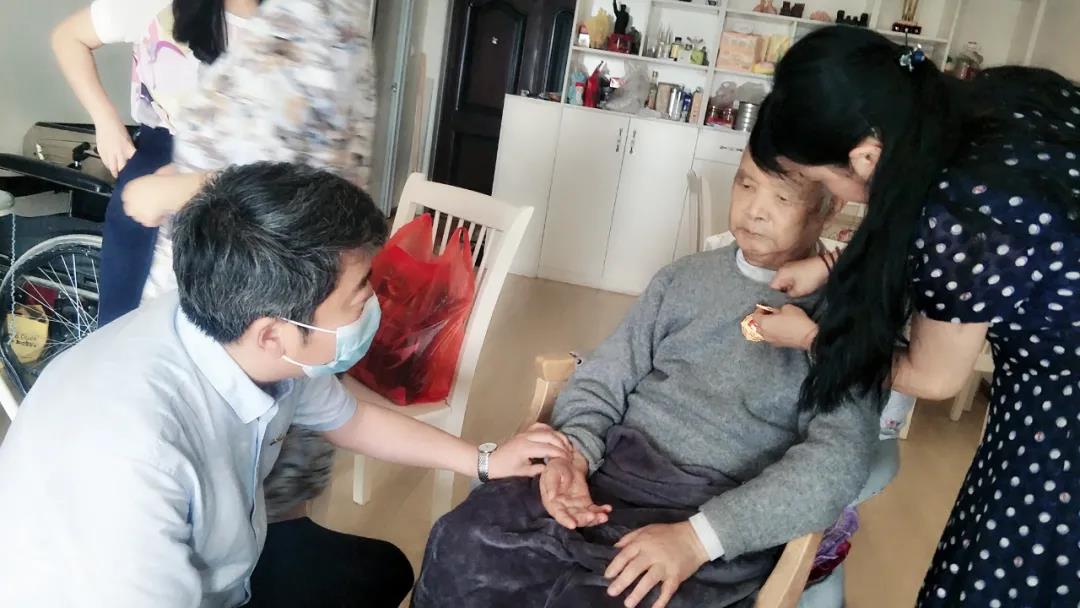 来到张克强家里,刘涛院长将中共中央颁发的“光荣在党50年”纪念章送到他的手中,并向他致以崇高的敬意和诚挚问候。同时,对老同志嘘寒问暖、把脉问诊、俯身为其查看腿部浮肿情况,亲似自己的家人。表扬老同志身体硬朗,眼睛情况良好,祝愿老同志健康长寿,安享晚年!