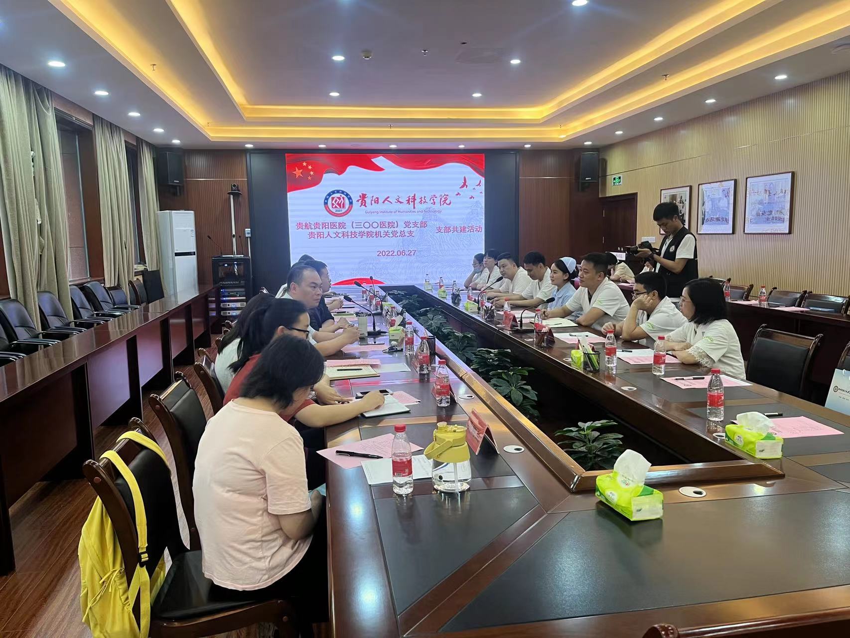 为进一步发挥各党支部的优势互补作用,紧紧围绕党史学习教育和“我为群众办实事”实践活动要求,坚持以党建为引领,通过“党史共学、业务共研、实事共办”,共同促进支部建设再上新台阶,6月27日下午,门急诊党支部书记颜元带领支部部分党员前往贵阳人文科技学院开展主题党日活动,贵阳人文科技学院党委委员、统战部部长、机关党总支书记刘广超等人参加活动。
