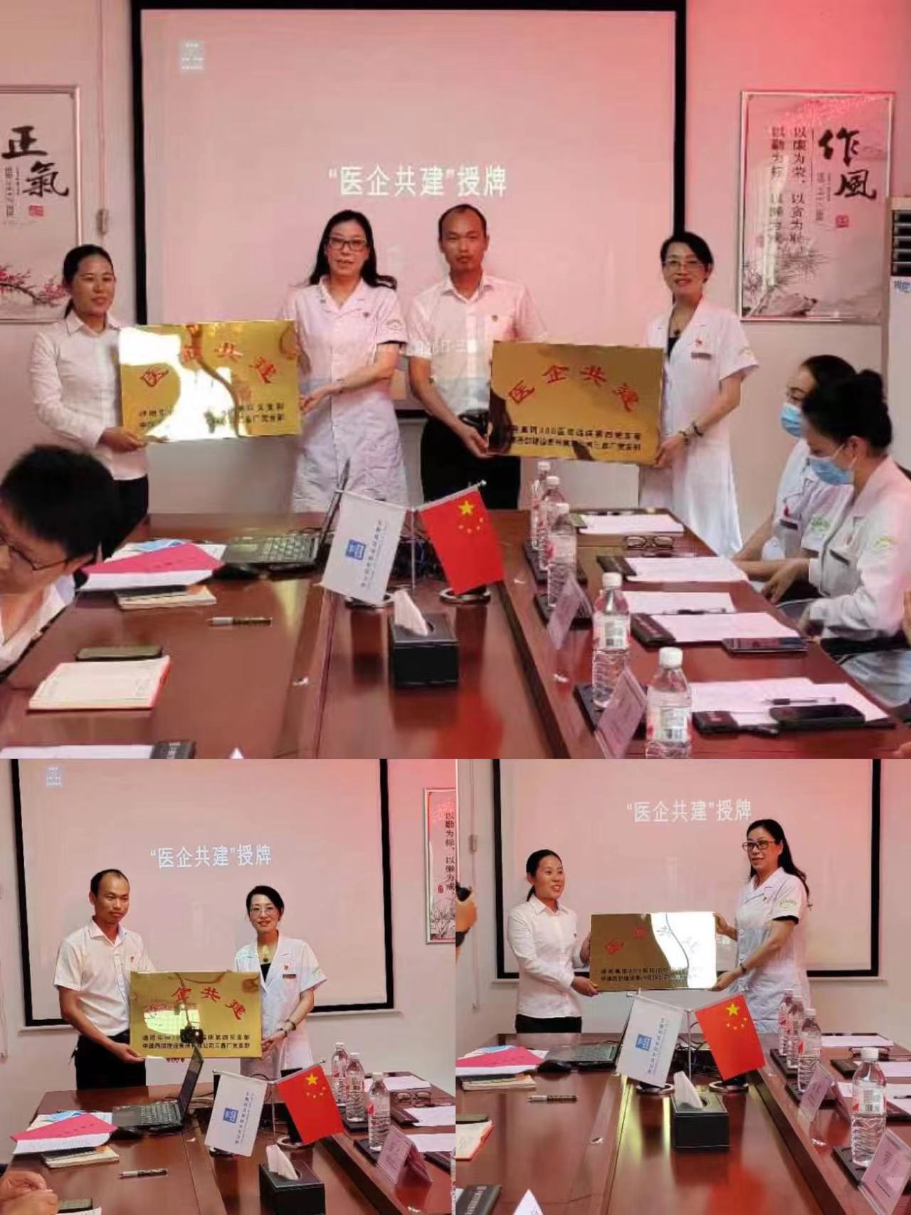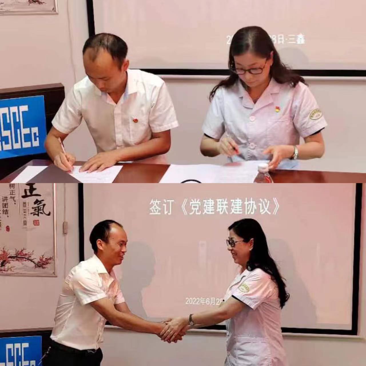 副院长罗莉与三鑫厂党支部书记刘力恒共同签订《党建联建协议》并举行“医企共建”授牌仪式,双方表示此次联建活动只是支部共建的开始,两个支部今后将坚持以党建为引领,共同深化党建工作,加强党建工作联动,共同开展党日活动;发挥各自的优势,实现资源共享、优势互补、推进双方党建工作高质量发展。