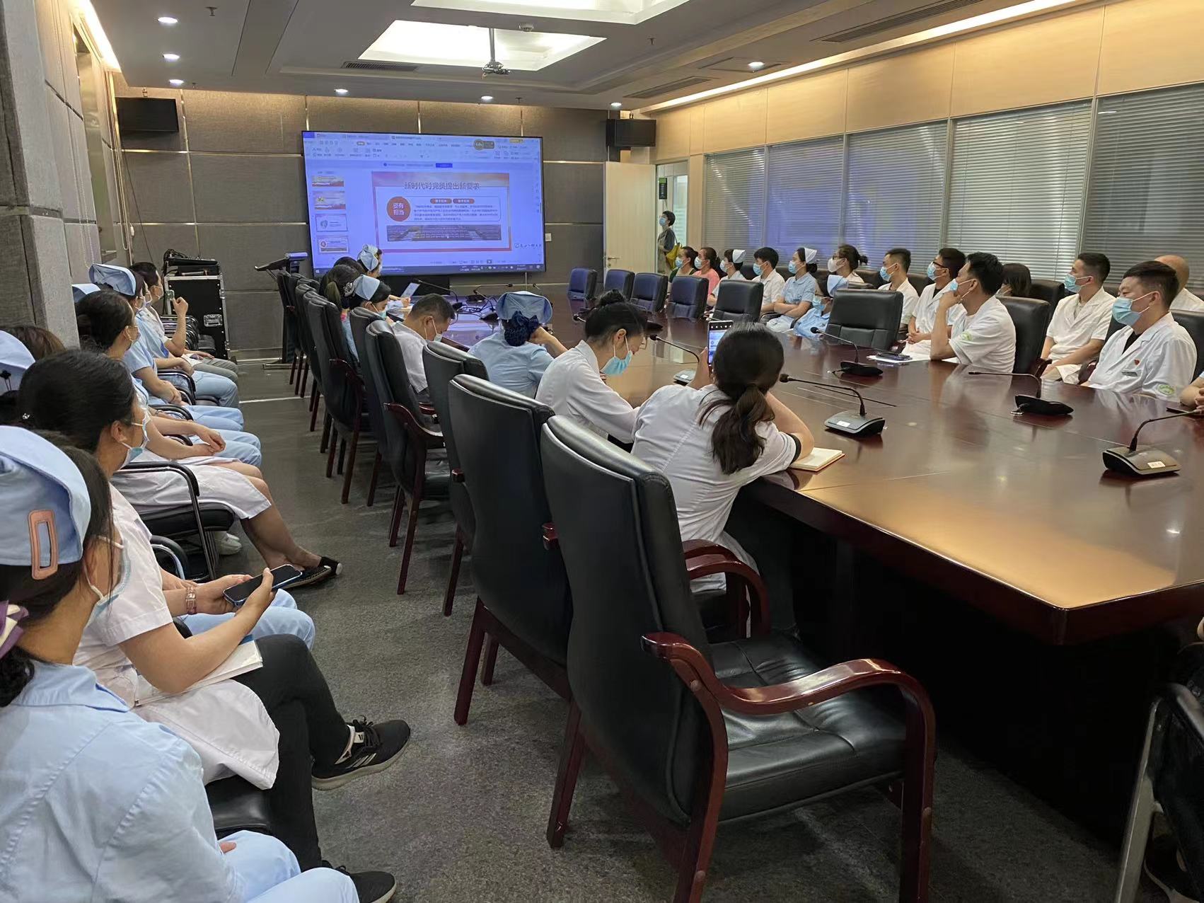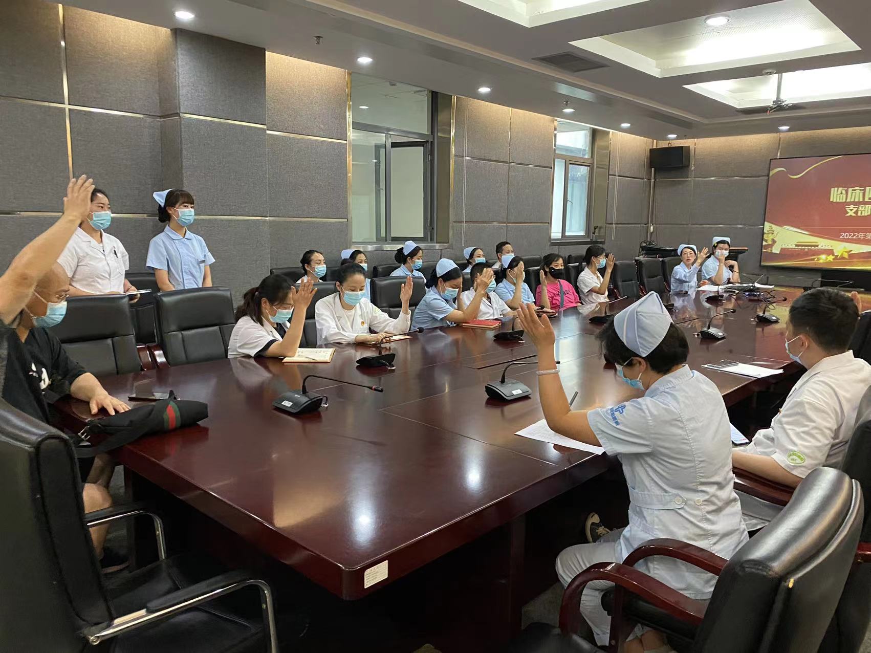 7月1日上午,临床四支部在门诊四楼大会议室召开支部大会,共36名党员及积极分子参加学习,会议分为三个议程:一、第二季度党课《不忘初心跟党走·我是党员我奉献》;二、临床四支部2022年上半年工作总结;三、临床四支部2022年上半年党员发展情况。